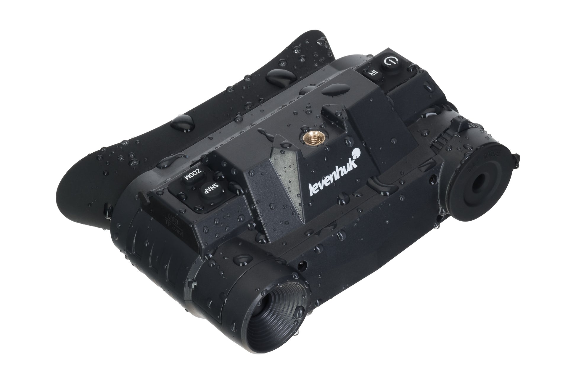 Lornetka Levenhuk Halo NVB10 służy do orientacji w terenie i prowadzenia obserwacji w całkowitej ciemności lub przy słabym oświetleniu, na przykład podczas nocnych polowań, działań ochroniarskich lub akcji poszukiwawczo-ratowniczych. Dzięki przybliżeniu cyfrowemu 3,5 raza i matrycy 2 Mpix urządzenie może być również używane jako lornetka w ciągu dnia. Układ optyczny ze szkła optycznego z wielowarstwową powłoką przeciwodblaskową generuje wysokiej jakości obraz, a oświetlacz IR zwiększa zasięg obserwacji.
