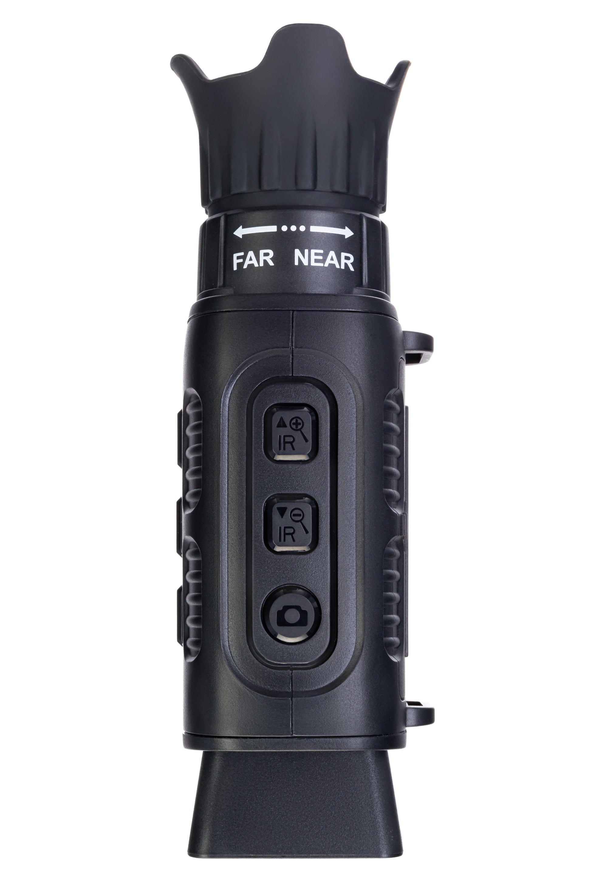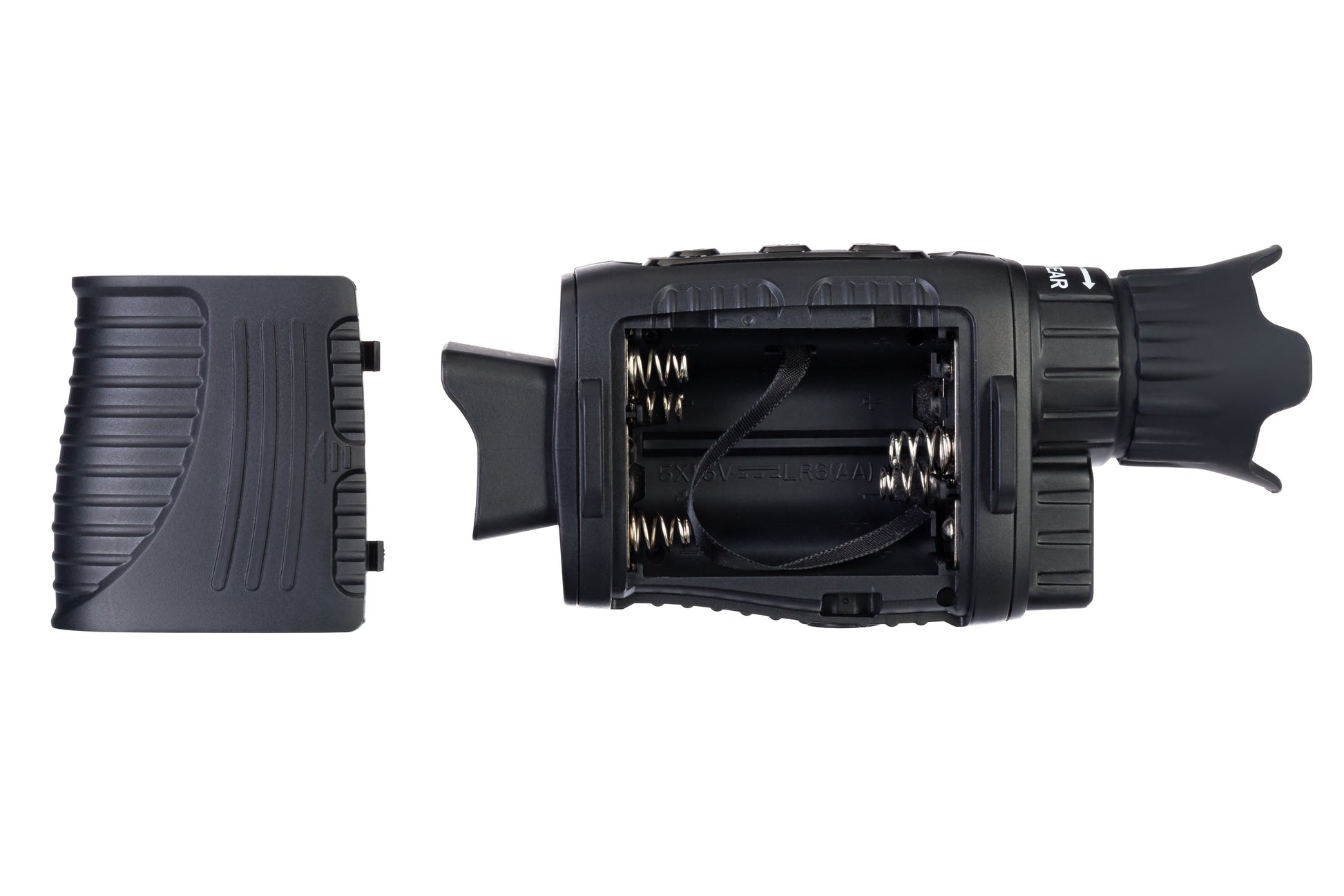 Monokular ma odporny na wilgoć korpus z gwintem 1/4". Wyróżnia się ergonomiczną budową oraz wygodnym chwytem. Przyrząd jest bardzo łatwy w obsłudze. Monokular noktowizyjny jest zasilany bateriami AA (kupowane osobno), ponieważ jest to najwygodniejsze rozwiązanie w warunkach polowych. Wyczerpane baterie można szybko zastąpić nowymi, a ładowanie wbudowanego akumulatora w terenie jest bardzo niepraktyczne. Przyrząd może pracować od 4 do 10 godzin na jednym naładowaniu, w zależności od intensywności podświetlenia.