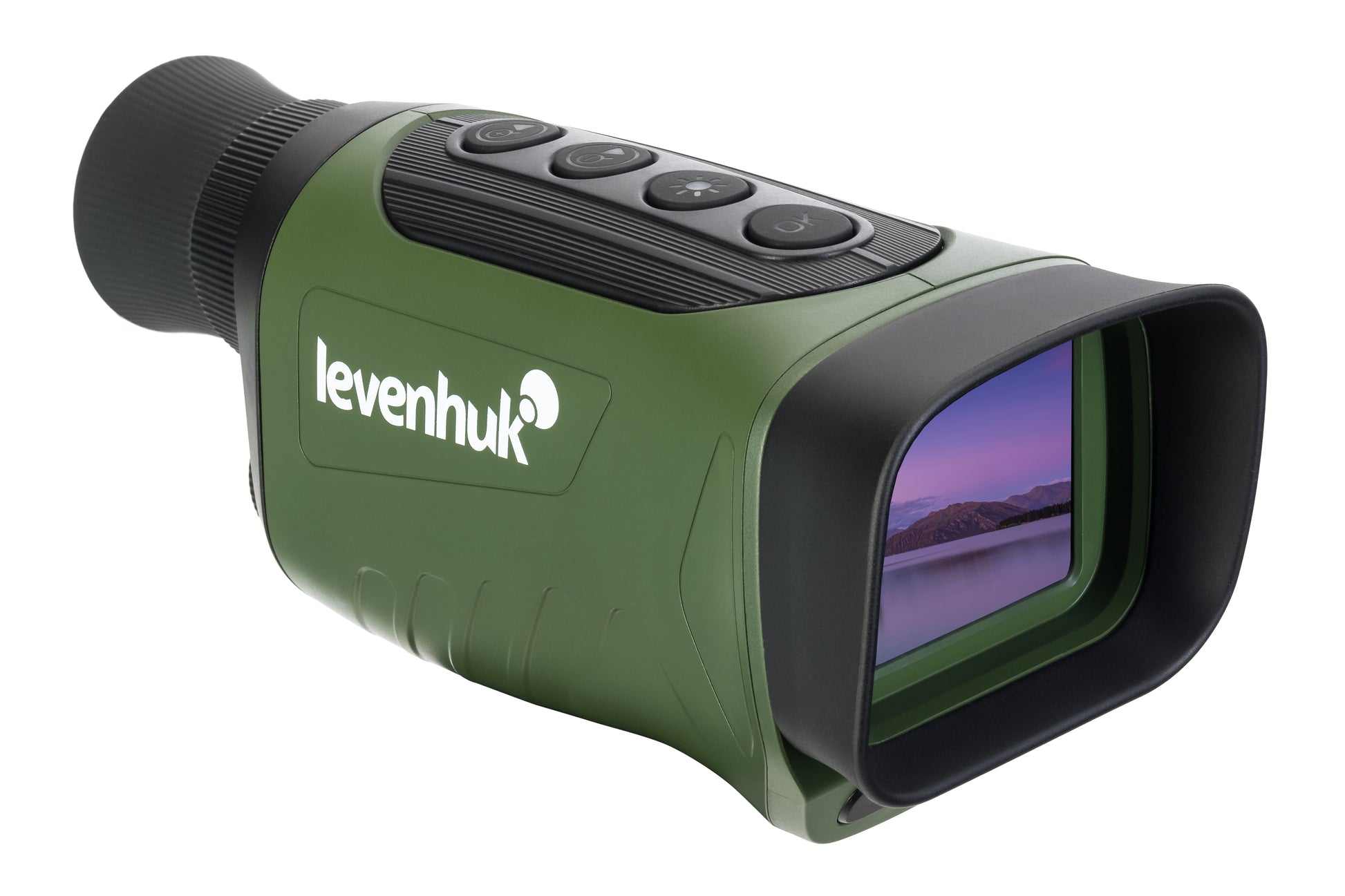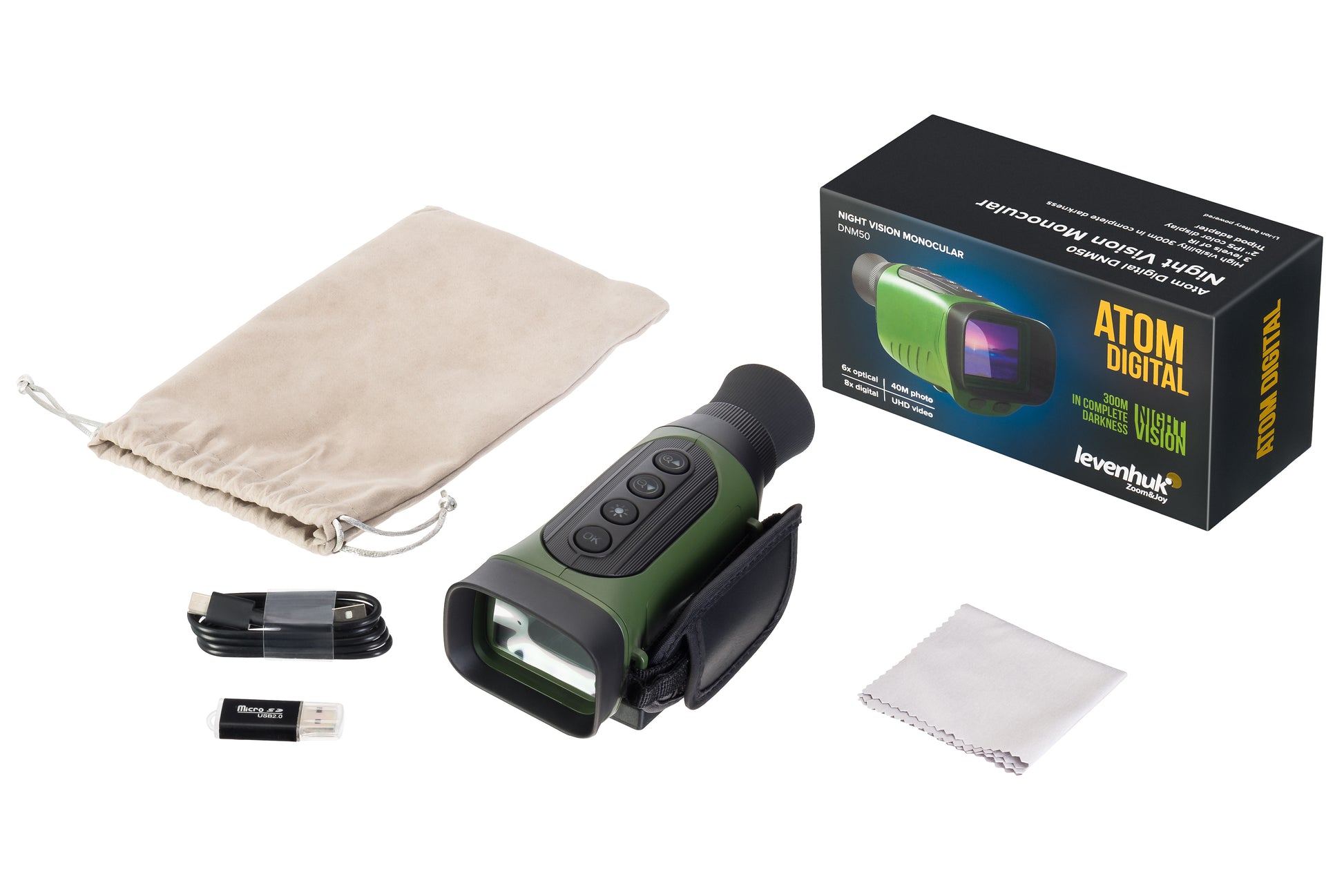 Monokular noktowizyjny Levenhuk Atom Digital DNM50 to kompaktowe cyfrowe urządzenie noktowizyjne o zasięgu widzenia do 300 metrów w ciemności, wyposażone we wbudowany rejestrator do wykonywania zdjęć i nagrywania filmów. Funkcje urządzenia doskonale sprawdzą się podczas nocnych polowań, wielodniowych wędrówek i obserwacji terenu. Monokular może być używany w dzień i w nocy. Obserwacje w ciemności można prowadzić przy użyciu 3 poziomów intensywności oświetlenia światłem podczerwonym. Urządzenie jest wyposażone w powiększenie optyczne 6x i przybliżenie cyfrowe 1–8x. Kolorowy obraz dzień, czarno-biały w nocy.